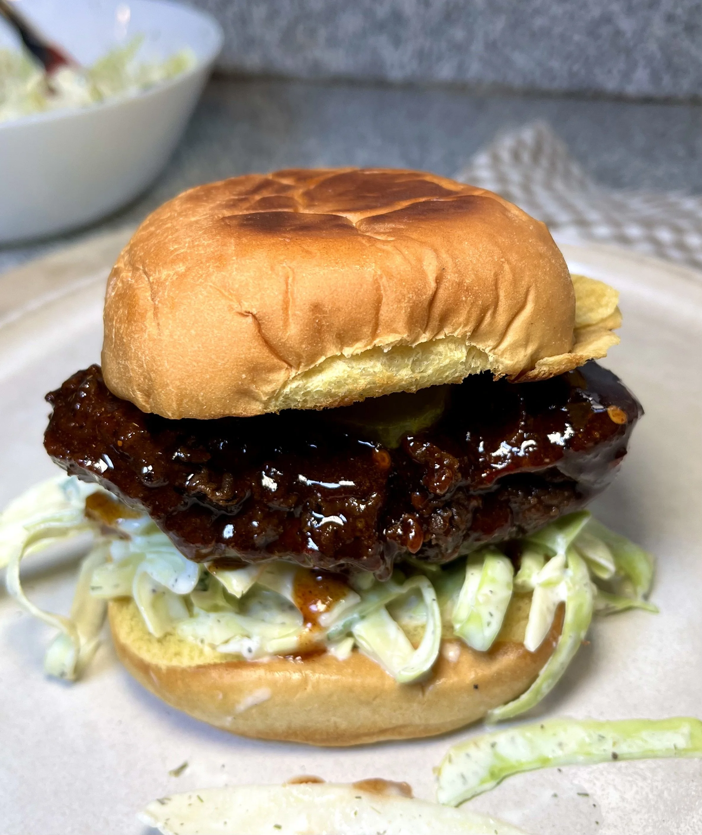 Armamos el sandwich de pollo poniendo un poco de la salsa ranch sobre el pan, agregamos la col, el pollo, los pepinillos y listo.