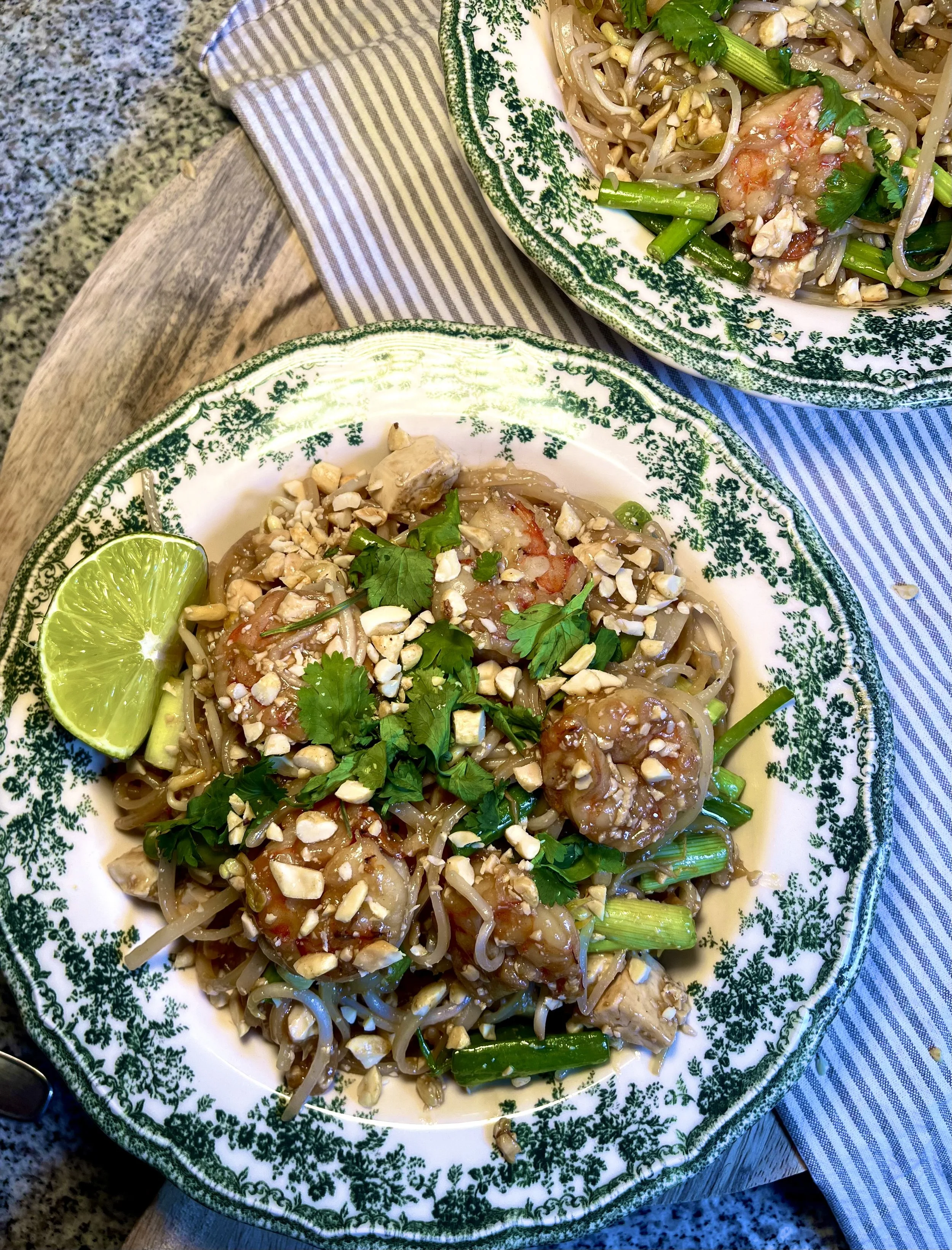 2. En un sartén pon a cocer los camarones en aceite de cacahuate, retira y pon a freír el tofu, retira y pon a freír el shallot, ajo y jengibre picado.